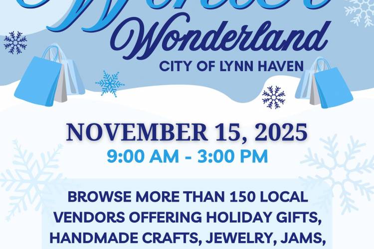 Join the City of Lynn Haven on Saturday, November 15th, from 9:00 a.m. to 3:00 p.m. for the Winter Wonderland holiday shopping event at Sharon Sheffield Park.